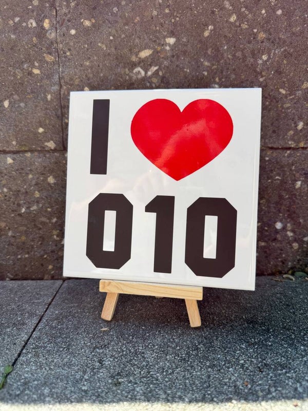 Laat zien waar jouw hart ligt met dit keramische tegeltje van 15x15 cm met de tekst “I ❤️ 010”. Perfect voor aan de muur, op je bureau of als cadeau voor iemand met Rotterdam in z’n hart.