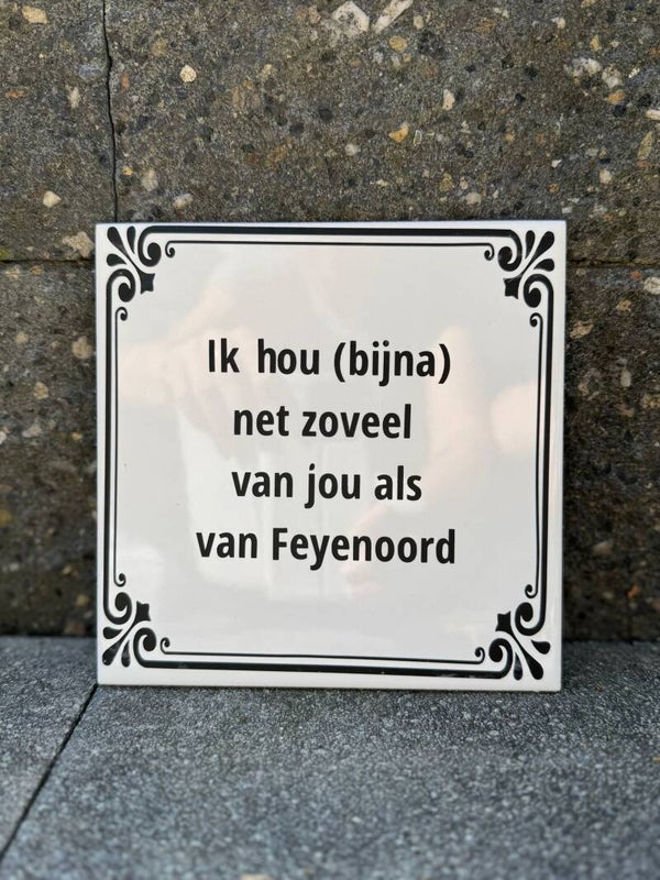 Een eerlijke (en hilarisch herkenbare) liefdesverklaring voor de partner van een échte Feyenoordfan. Want ja… bijna niets komt boven de club – behalve jij dan. Misschien.